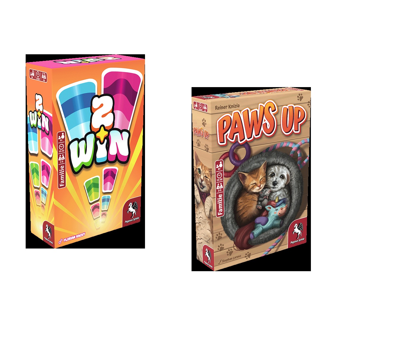 Seit Juni sind zwei Kartenspiel-Neuheiten bei Pegasus Spiele erhältlich: Während die Spielenden in dem Familienspiel Paws Up von Reiner Knizia durch cleveres Tauschen mit süßen Tierfotos punkten und die meisten viele Pfötchen-Likes sammeln möchten, geht es in dem Familienspiel 2 Win darum, mit einer Mischung aus Glück und Taktik möglichst lange im Spiel zu bleiben.