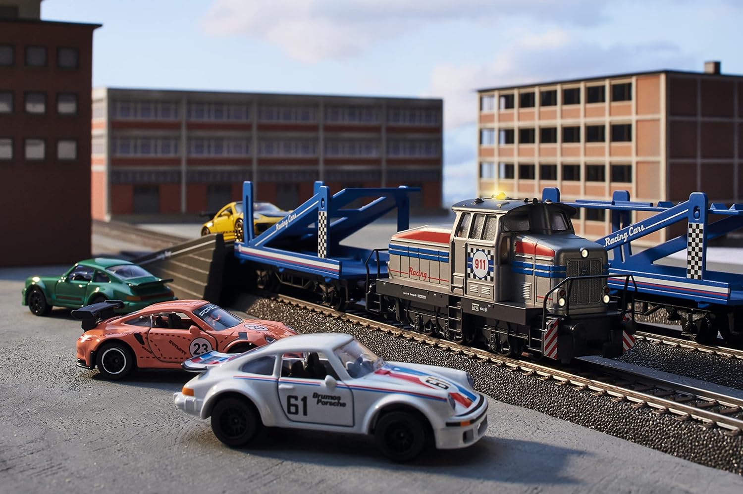 Die neue Märklin my world Startpackung „Autotransport“ ist sowohl für Zugfans als auch für Autoliebhaber genau das Richtige. Ein Autohaus erwartet freudig die Lieferung zweier Sportwagen – da kommt der dreiteilige Güterzug wie gerufen. Er transportiert die beiden Luxuskarossen auf dem Autotransportwagen mit klappbarer Verladerampe sicher über die Schienen.