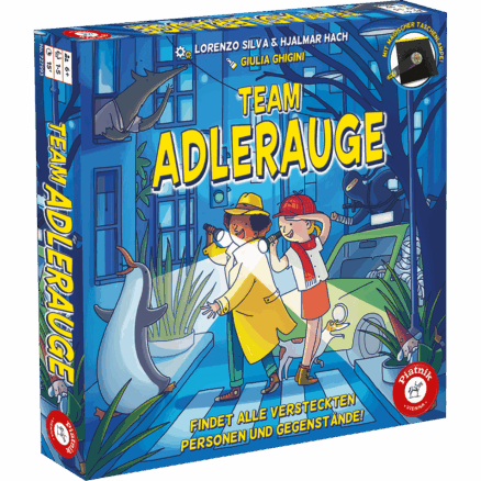Sind am Ende alle Kinder zur Schlafenszeit wieder zu Hause, gewinnt das Team. „Team Adlerauge“ kann kooperativ, im Solo-Modus oder kompetitiv gespielt werden und je nach Alter der Kinder in einer einfacheren oder schwierigeren Version. Ideal für 1-5 Kinder ab 6 Jahren.