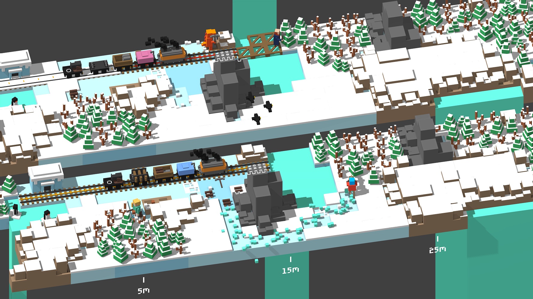 Ohne vorausschauendes Planen, den Abbau von Holz und Stein, passgenaues Schienen-Legen, Upgrades für den Zug in Form neuer Wagons und der Verteidigung der Strecke gegen alle, die sich in den Weg stellen, kommt der Zug nicht weit.