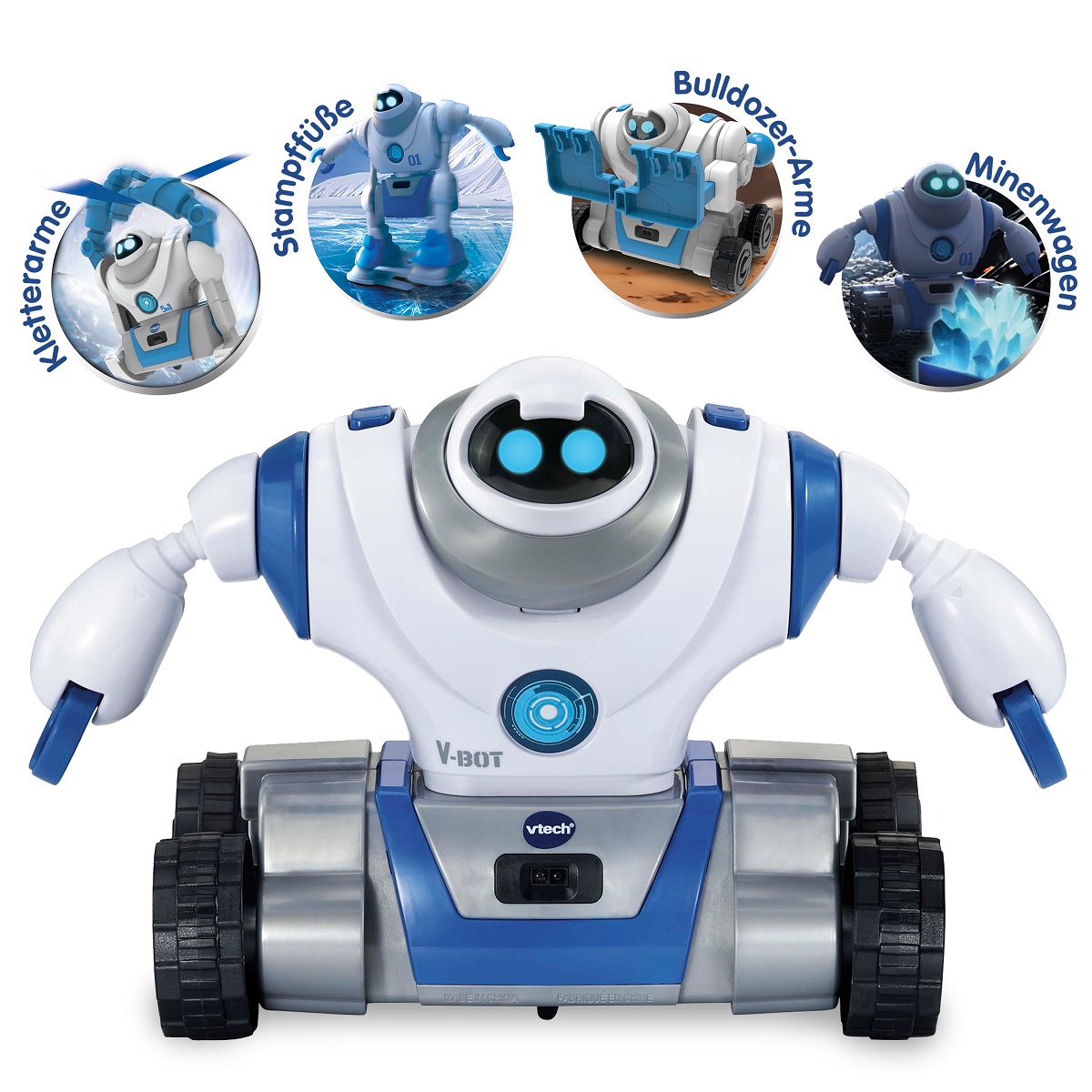 Spannende Missionen auf fernen Planeten warten! Ob einen Asteroiden abwehren, über einen gefrorenen See gleiten oder eine Lavaschlucht überqueren – der V-Bot ist bereit für jede Herausforderung!