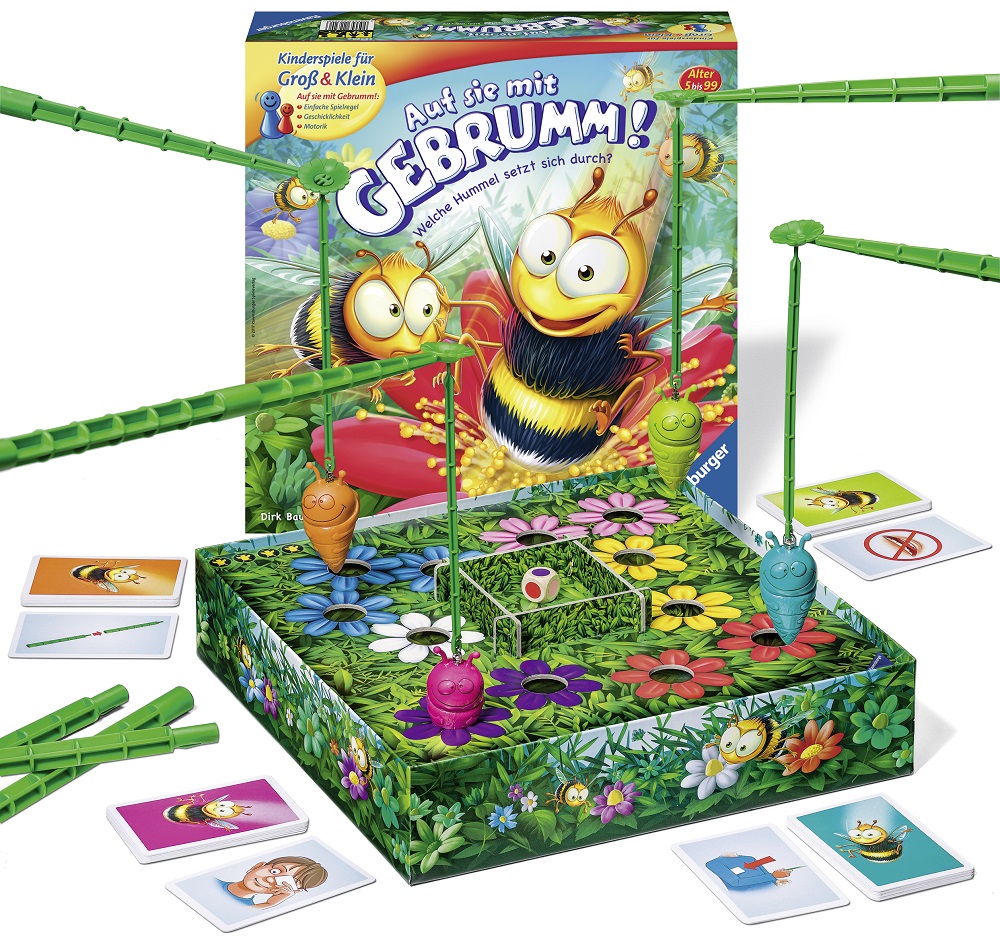 Auf sie mit Gebrumm! ist ein aktionsreiches Geschicklichkeitsspiel für zwei bis vier Kinder ab fünf Jahren. Es ist für rund 38 Euro im Spielwarenhandel erhältlich.