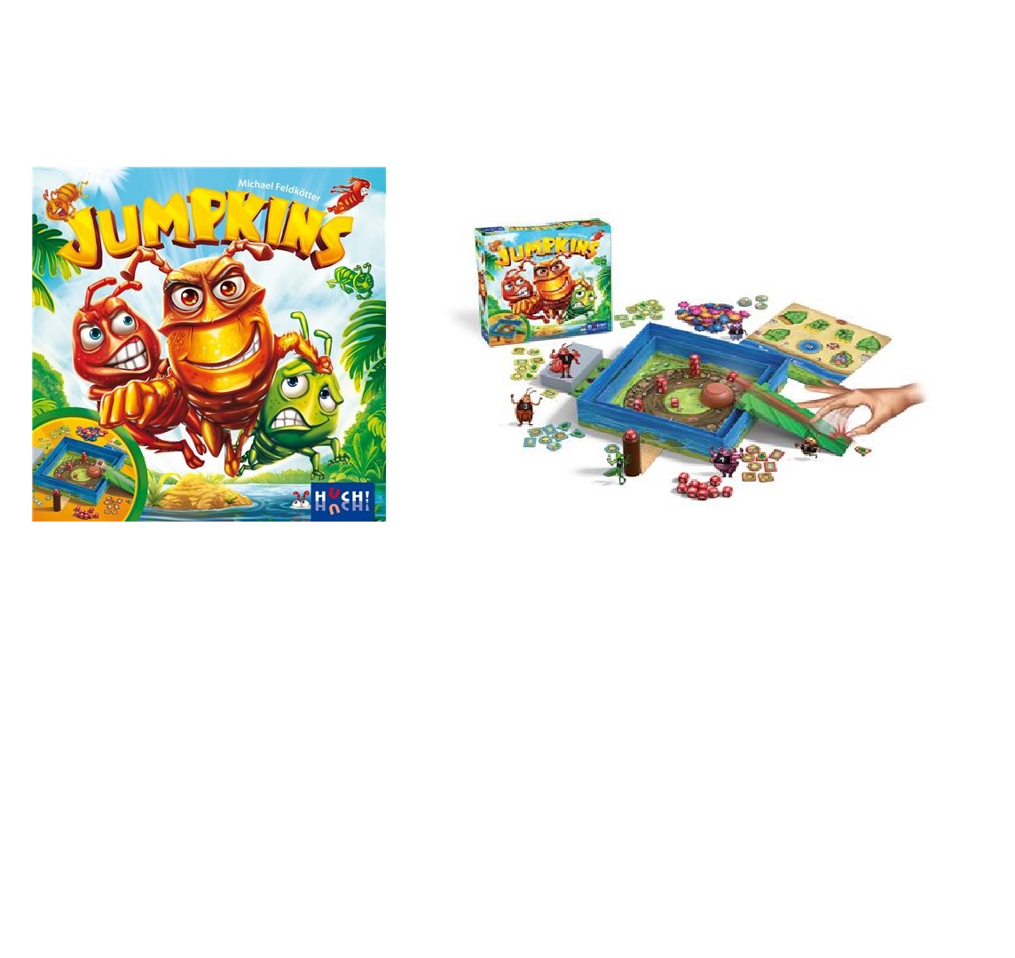 „Jumpkins“ ist ein witziges Geschicklichkeitsspiel, das mit den Zusatzszenarien „Rummelplatz“ und „Badetag“ langen Spielspaß garantiert.