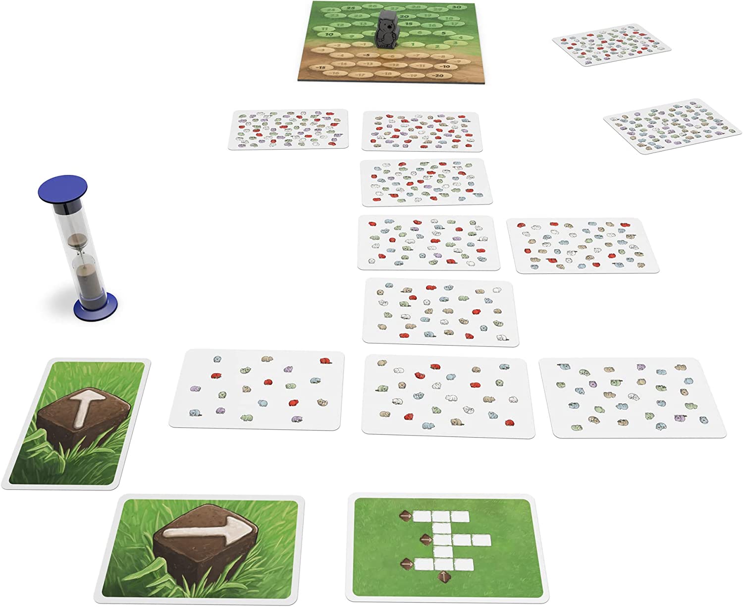 Die Karten werden dann in aufsteigender Zahl in dem entsprechend vorgegebenen Muster ausgelegt. Aber man hat nicht die Wombats händisch auszuzählen, denn gespielt wird gegen die Sanduhr.