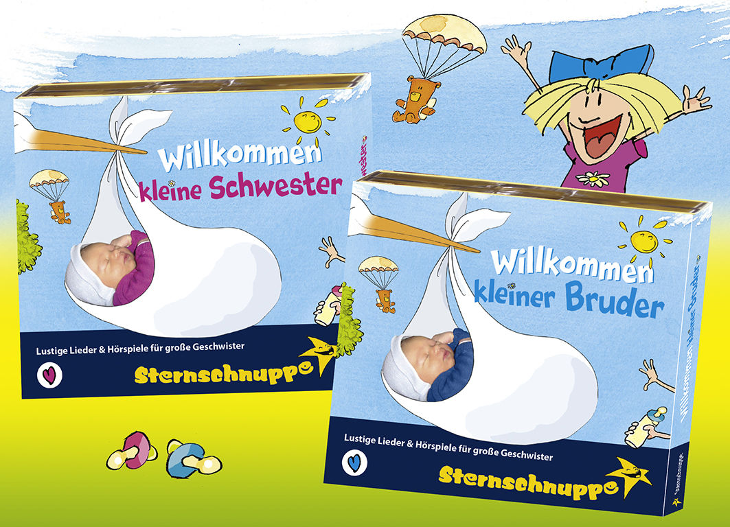 Die beiden Sternschnuppe-CDs »Willkommen kleine Schwester« und »Willkommen kleiner Bruder« sind im Handel und auf www.sternschnuppe.de erhältlich. Ganz neu: Zu jeder gekauften CD gibt es einen kostenlosen Download-Code für die Digitalversion.