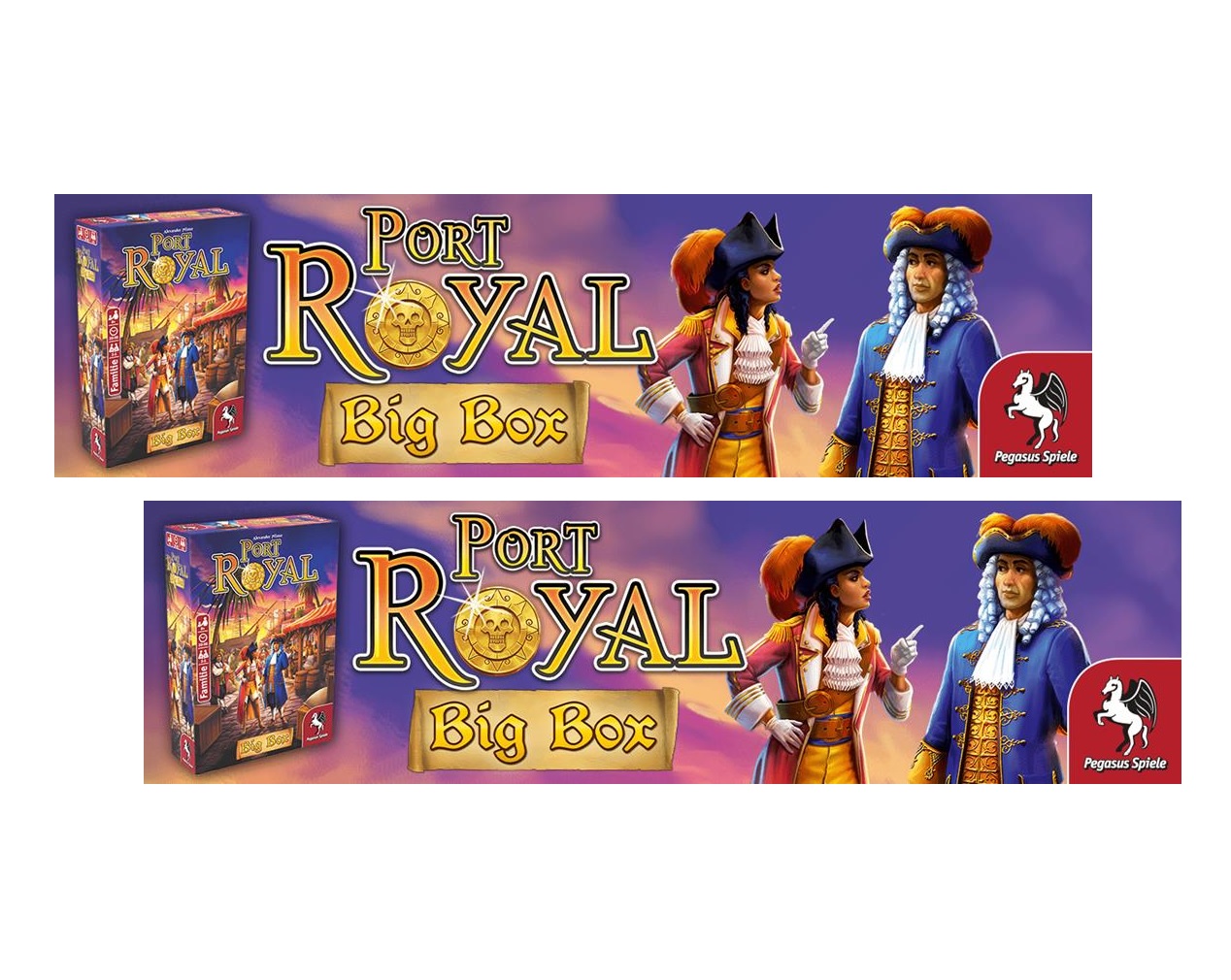 Vor wenigen Tagen ist die Port Royal Big Box bei Pegasus Spiele erschienen. Das Push-your-Luck Kartenspiel von Alexander Pfister, das seit 2014 die Spiele-Community und die Jurys internationaler Spielepreise begeistert, ist damit erstmals als Komplettbox erhältlich – mit komplett neuen Illustrationen, dem Grundspiel, beiden Erweiterungen, dem eigenständigen Spiel Port Royal unterwegs und einer Promokarte.