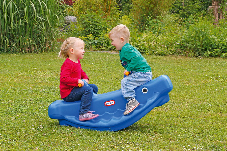 Die blaue Walwippe von Little Tikes ist ein tierisches Wipp- und Schaukelvergnügen für bis zu drei Kinder. Das Wassertier aus stabilem Kunststoff, in Deutschlandund Österreich vertrieben von Zapf Creation, fühlt sich auch an Land pudelwohl: