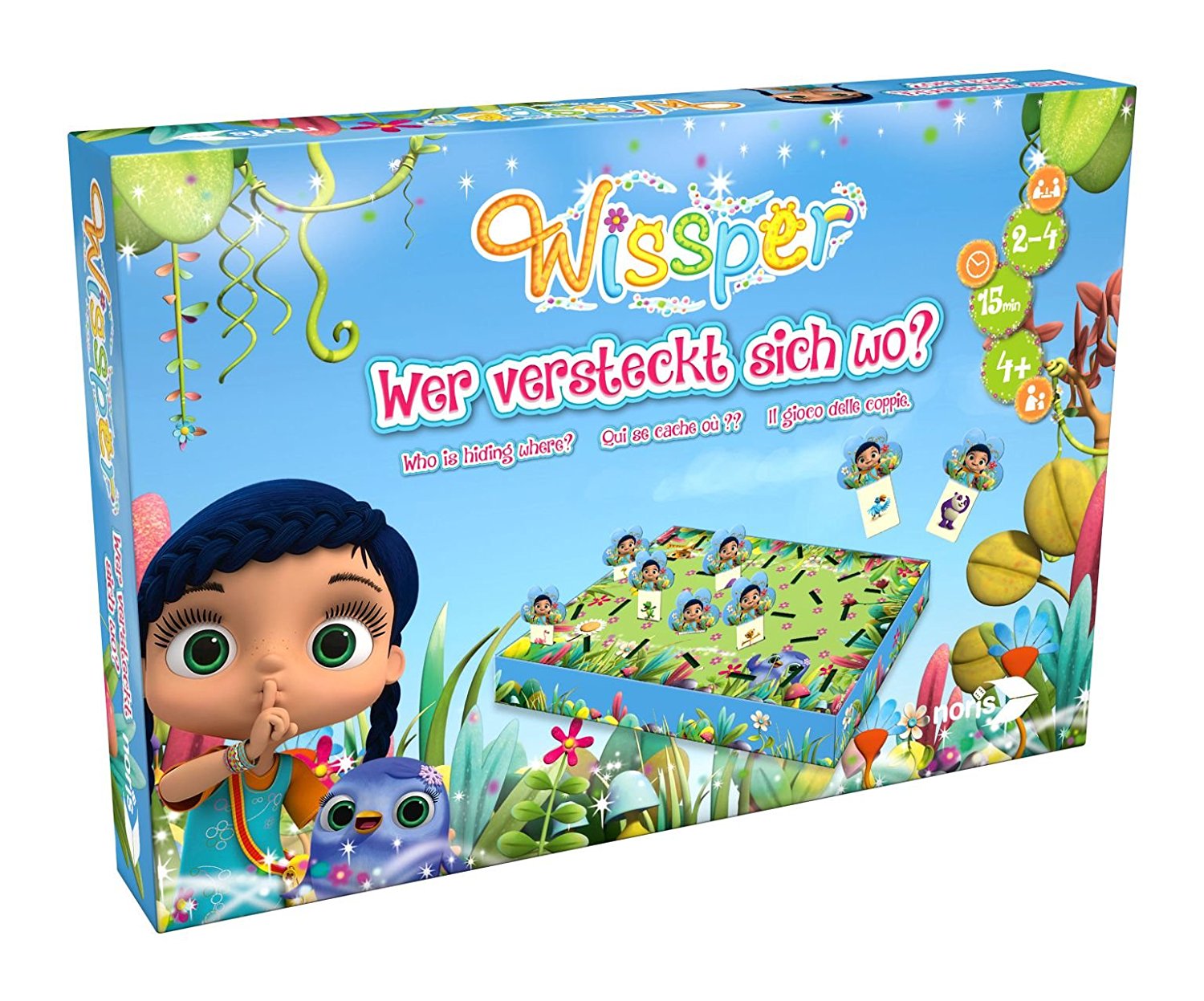 Bei dem außergewöhnlichen Versteckspiel „Wissper – Wer versteckt sich wo?“ von Noris-Spiele begeben sich zwei bis vier Spieler ab vier Jahren auf die Suche nach so vielen Bildpaaren wie möglich.