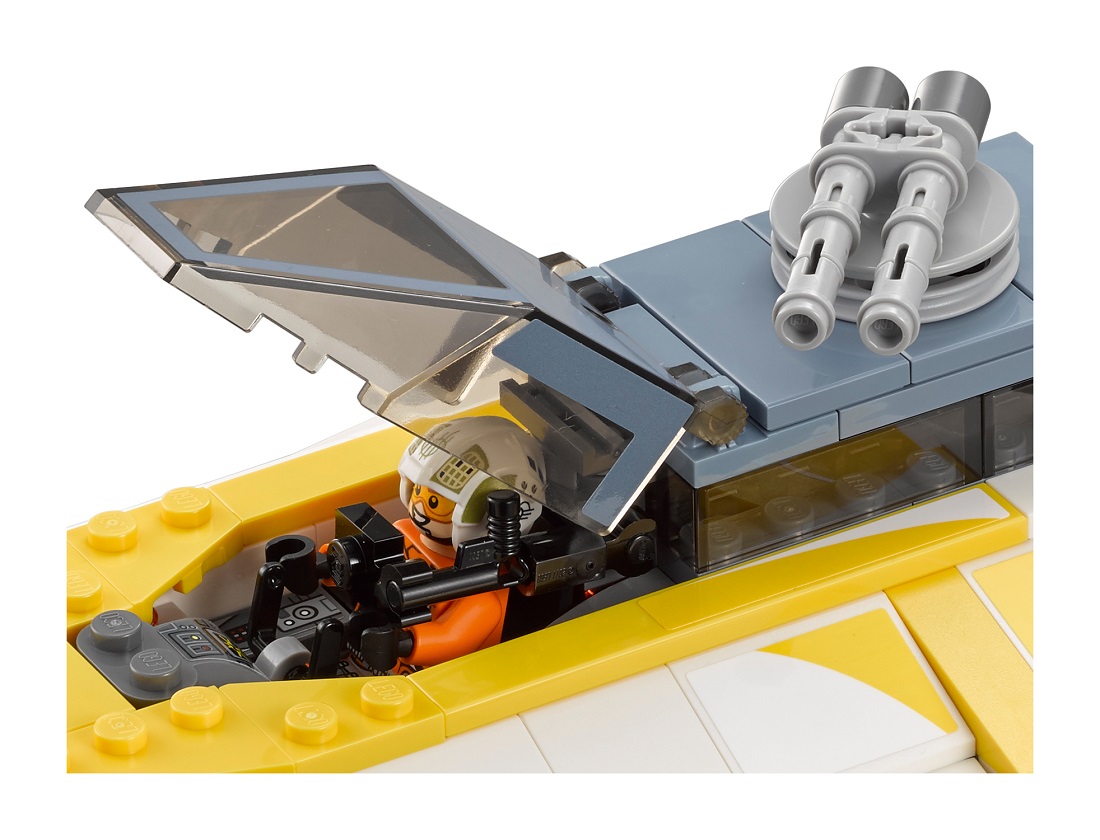 Der UCS „Y-Wing Starfighter™“ bietet anspruchsvollen Bauspaß mit vielen authentischen Details wie den radbetätigten, drehbaren Ionenkanonen, die jeden Wettstreit beherrschen, und einem Cockpit mit den LEGO Minifiguren Gold Leader und R2-BHD.